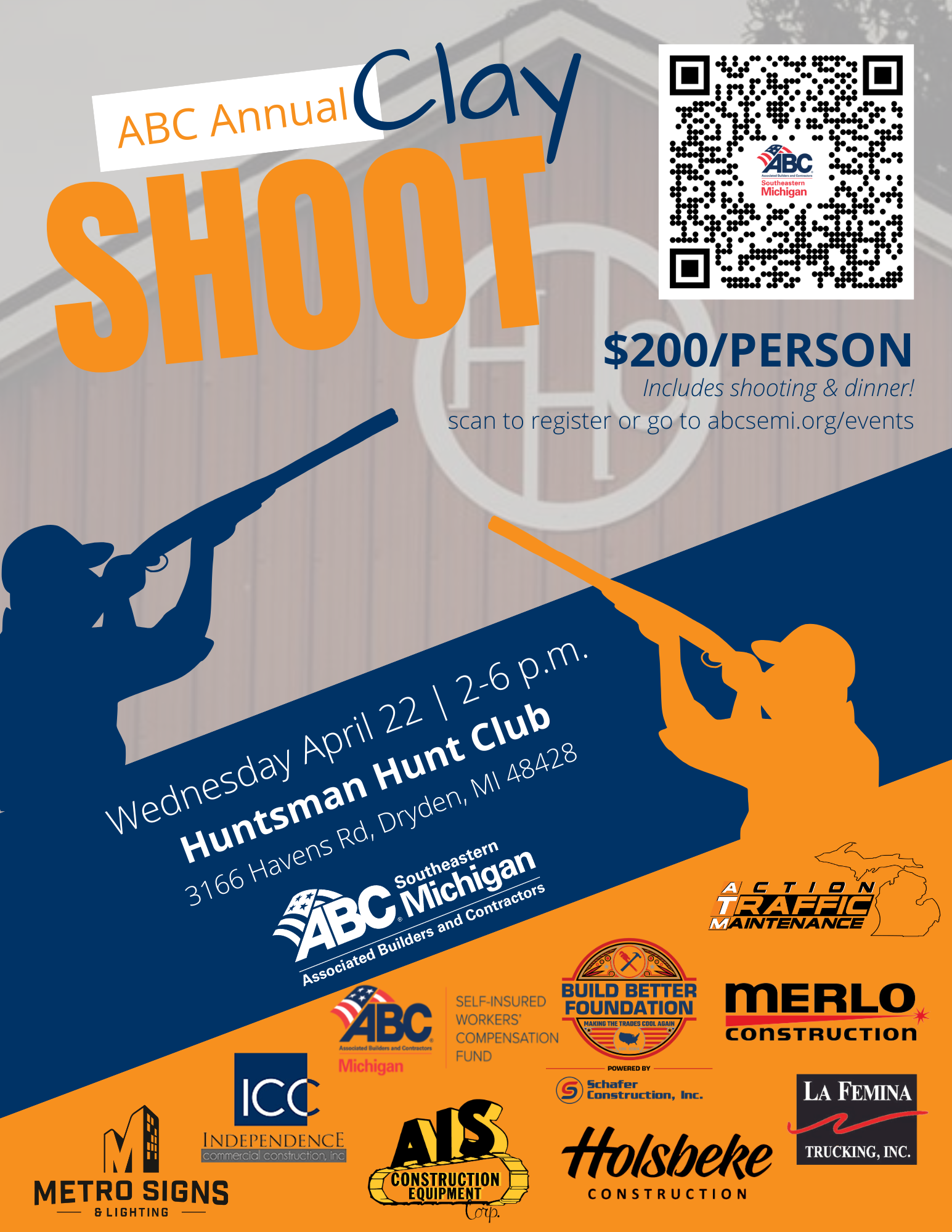 ABC SEMI’s 2026 Annual Clay Shoot Wednesday, April 22nd | 2-6 p.m. Huntsman Hunt Club – Dryden, MI
